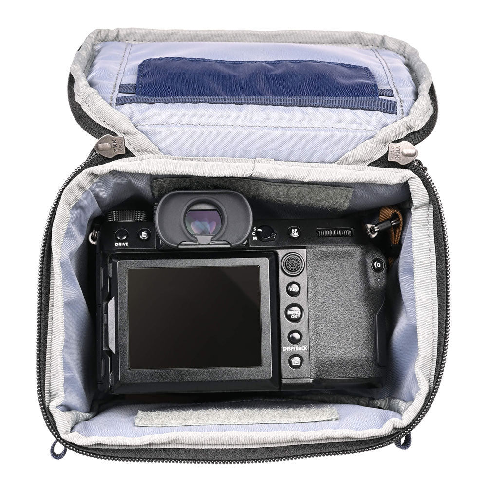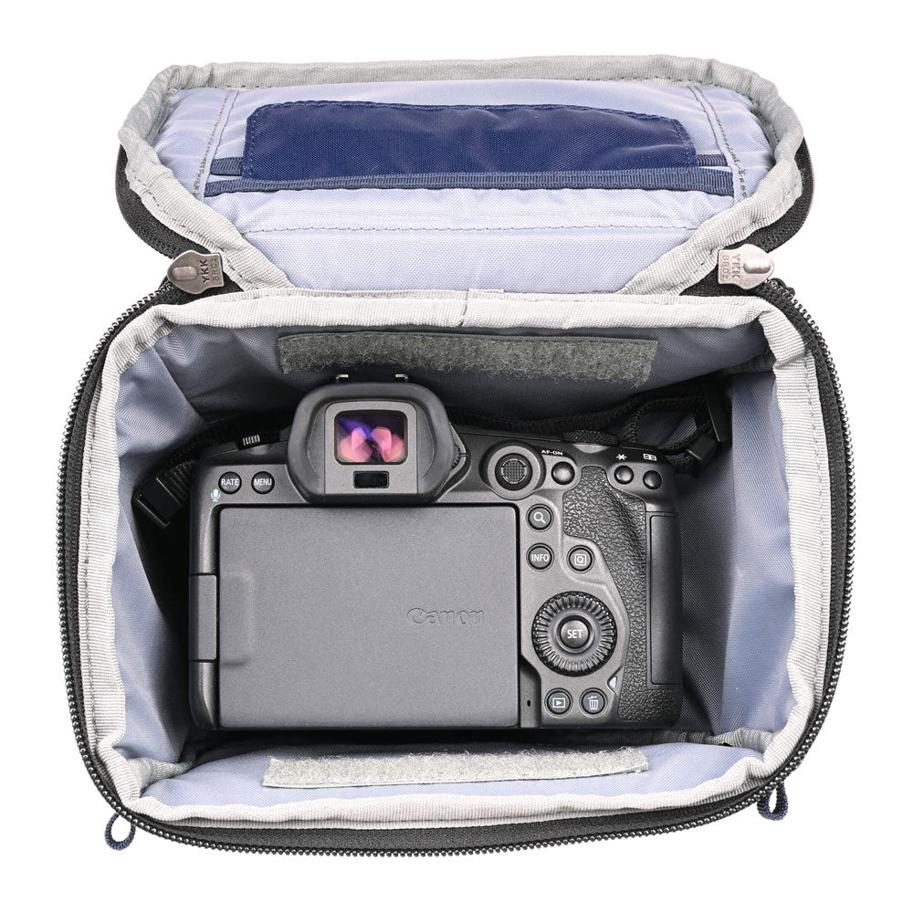 - Designed to be form-fitting to a standard or gripped camera body with a zoom lens attached