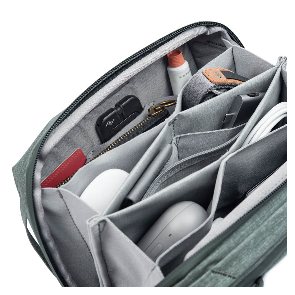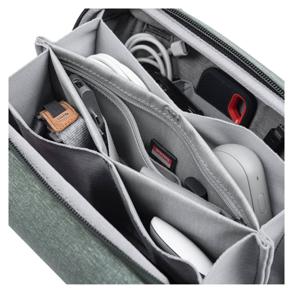 Whether storing cables, everyday gear, or travel essentials, the Peak Design Tech Pouch offers unrivaled organization and ease of access. Origami-style pockets create enormous spatial efficiency, letting you pack more into a smaller space while keeping your items neatly organized and easy to find. Elastic accessory loops keep items like pens, knives, SD cards, and batteries always within reach. Exterior handles and a clamshell-style opening make this pouch a delight to hold and access. External zip pocket has a cable pass-through for easy device charging. The 400D recycled nylon canvas shell is weatherproof and aesthetically clean.