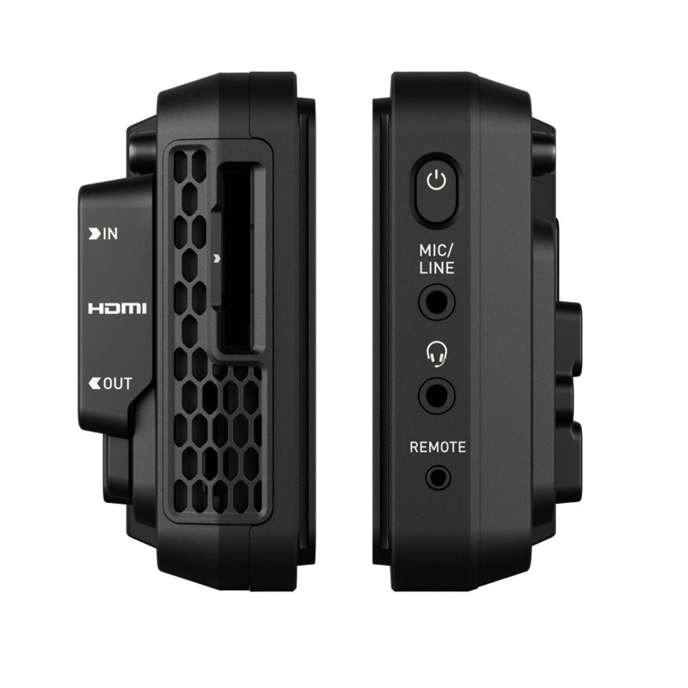 HDMI input supports 6K video up to 30 fps, up to 4K60, and up to 1080p120. Loop-through passes the incoming HDMI signal from the camera to another device, for example, an external monitor, wireless transmitter, or live streaming encoder. Via the HDMI input, you can record raw metadata such as white balance, exposure index, shutter speed/angle, Iris F stop, ISO, gamma, and gamut.