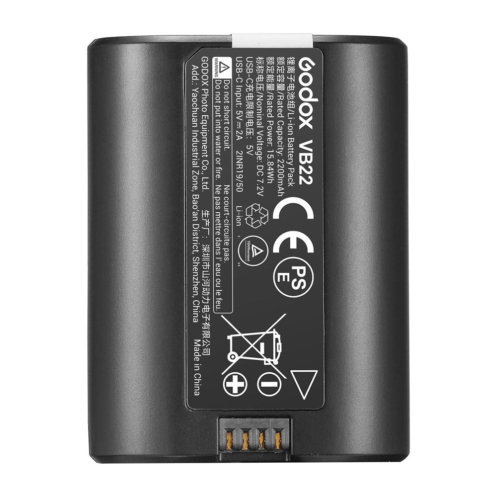 The Godox VB22 is a high-capacity, long-lasting battery for the V480 on-camera flash, delivering up to 650 full-power flashes per charge thanks to the 2200mAh capacity.