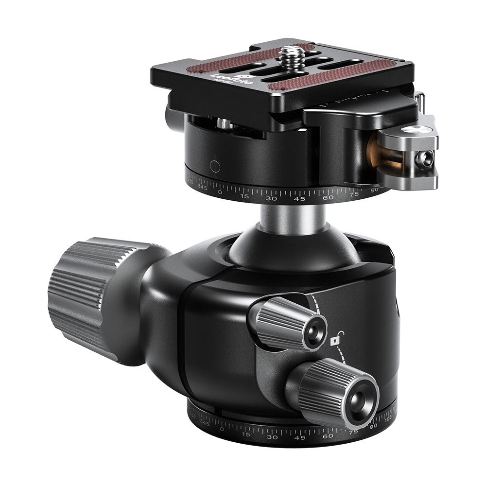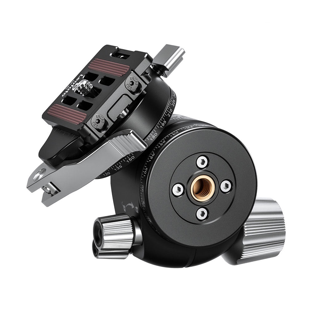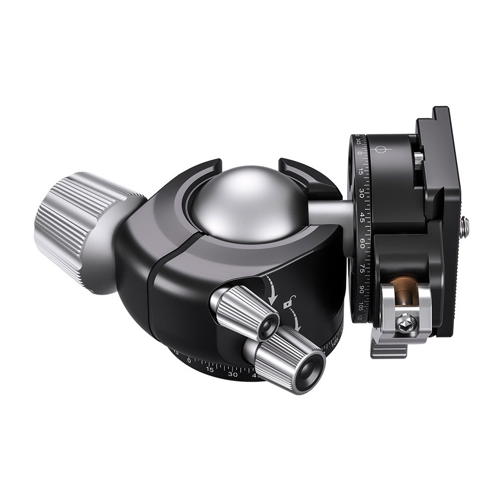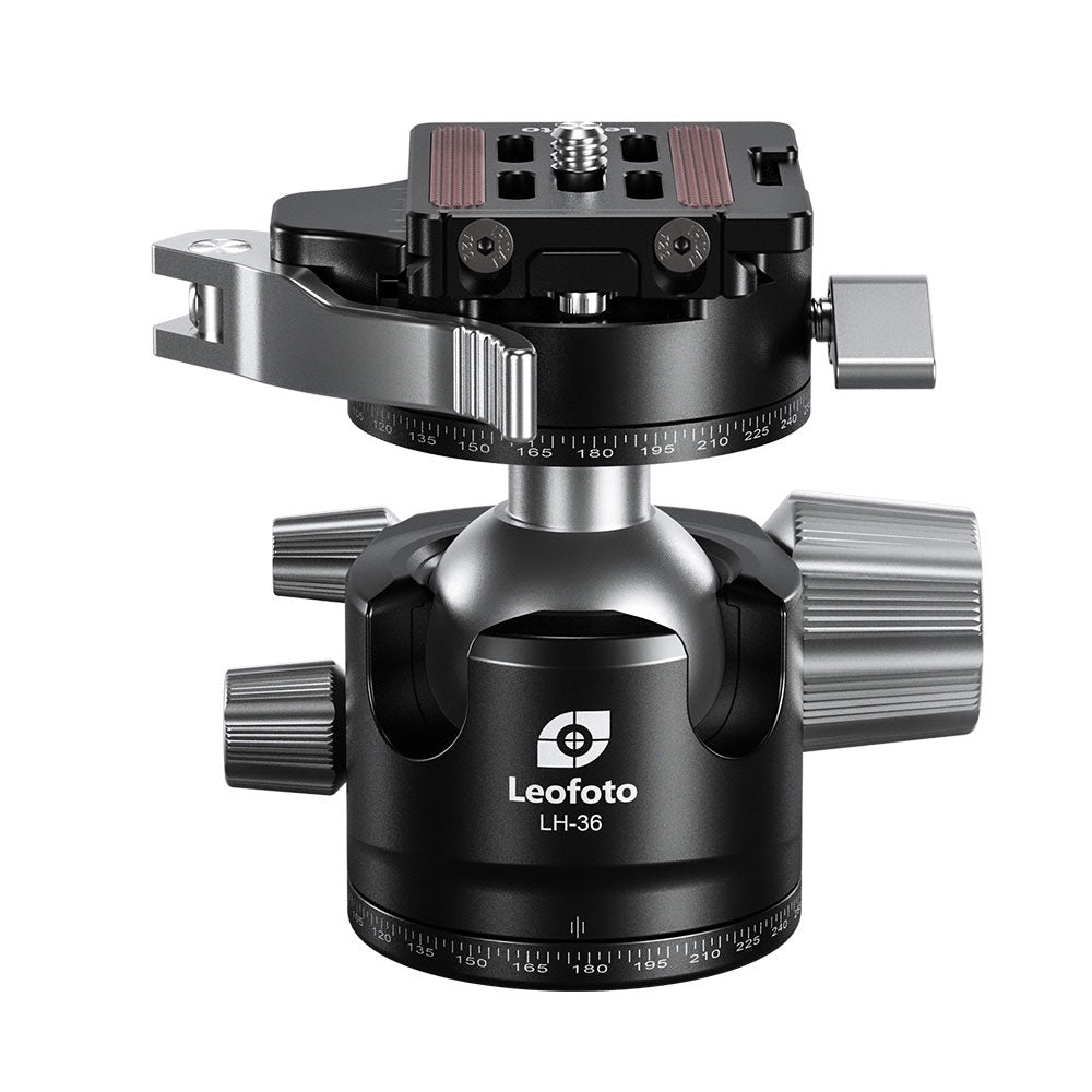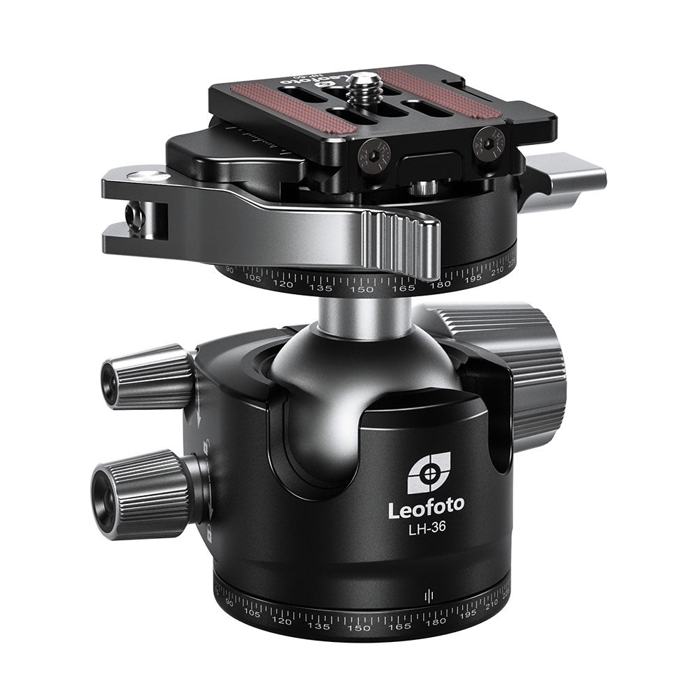 The Leofoto LH-36PCL is a professional-grade ball head designed to support heavy payloads while locking solidly and moving smoothly. The large, ergonomic main locking knob is easy to handle, and the precisely-machined ball is silky smooth. Dual drop notches allow you to easily change from landscape mode to portrait mode or other angles. A laser-engraved scale on the panning base provides easy and precise control during panorama shooting.