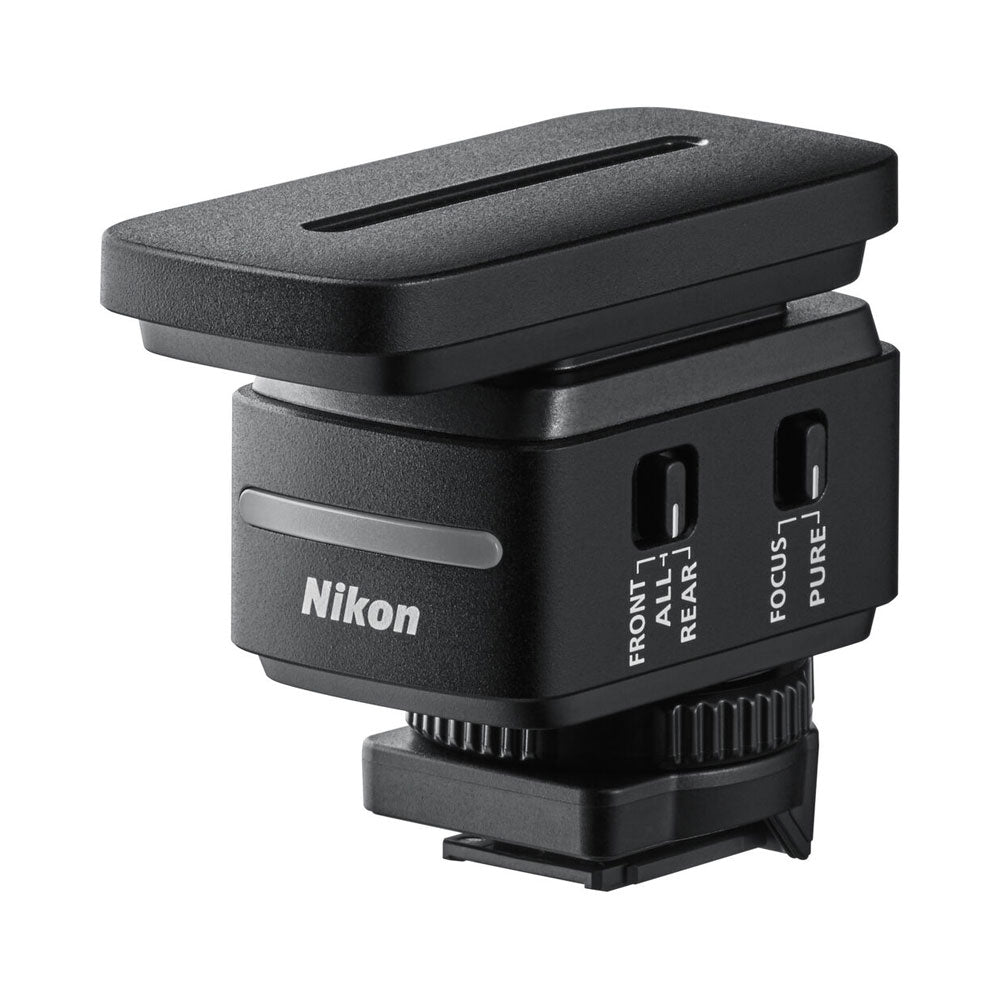 The Nikon ME-D10 is an optional shotgun microphone that attaches to the digital accessory shoe on the ZR. The microphone is powered by the ZR and supports professional-quality 32-bit float audio recording. Select the microphone mode that matches your creative intent—PURE mode for recording ambient sound “as-is” and FOCUS mode, tailored to human voices.* For added versatility, three directional pickup patterns are available—front, rear or omnidirectional. The ME-D10 features a built-in shock mount and a large front-facing status lamp that illuminates during video recording. Included with the microphone are a dedicated wind muff, digital accessory foot cover and case.