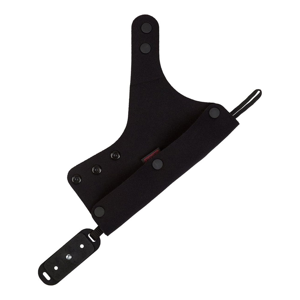 The Grip Strap adjusts to fit snugly across the back of the hand and attaches comfortable around the wrist with snaps. It attaches to the camera using Op/Tech's Uni-Loop system and tot he base plate using 3/8" webbing.