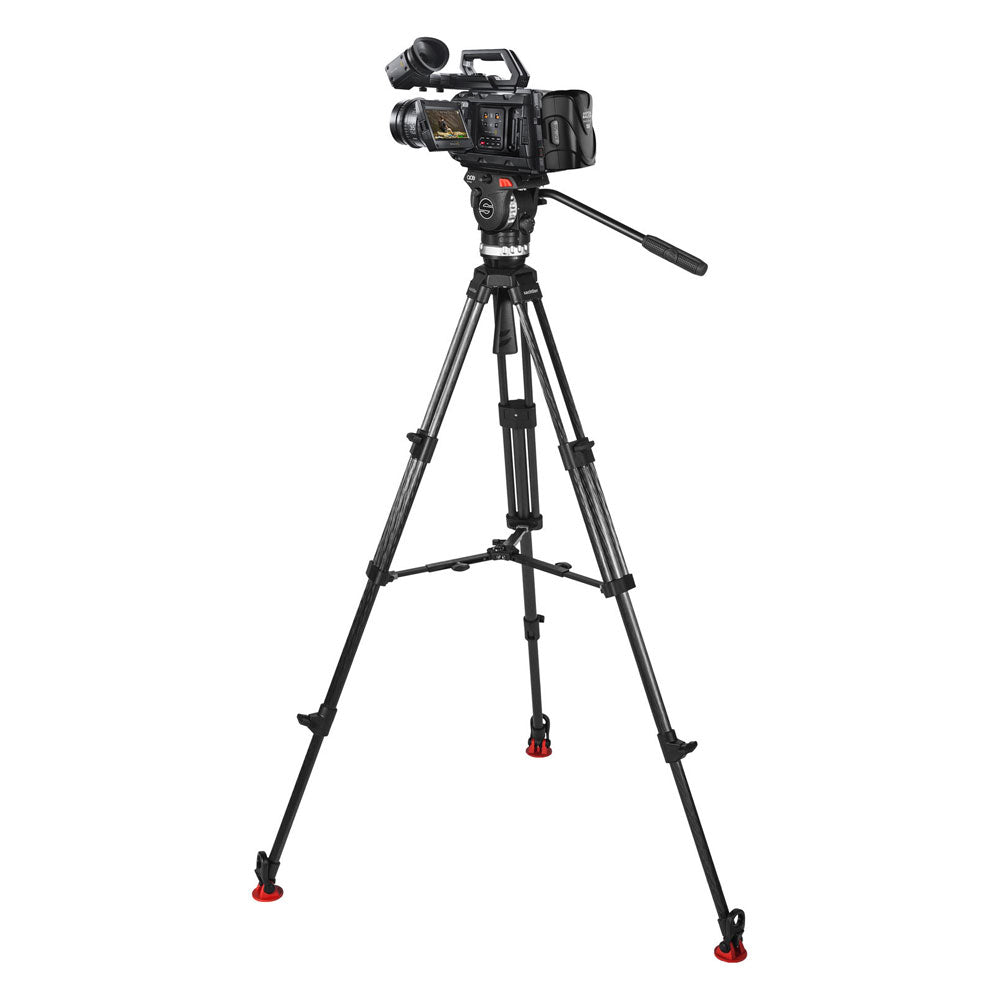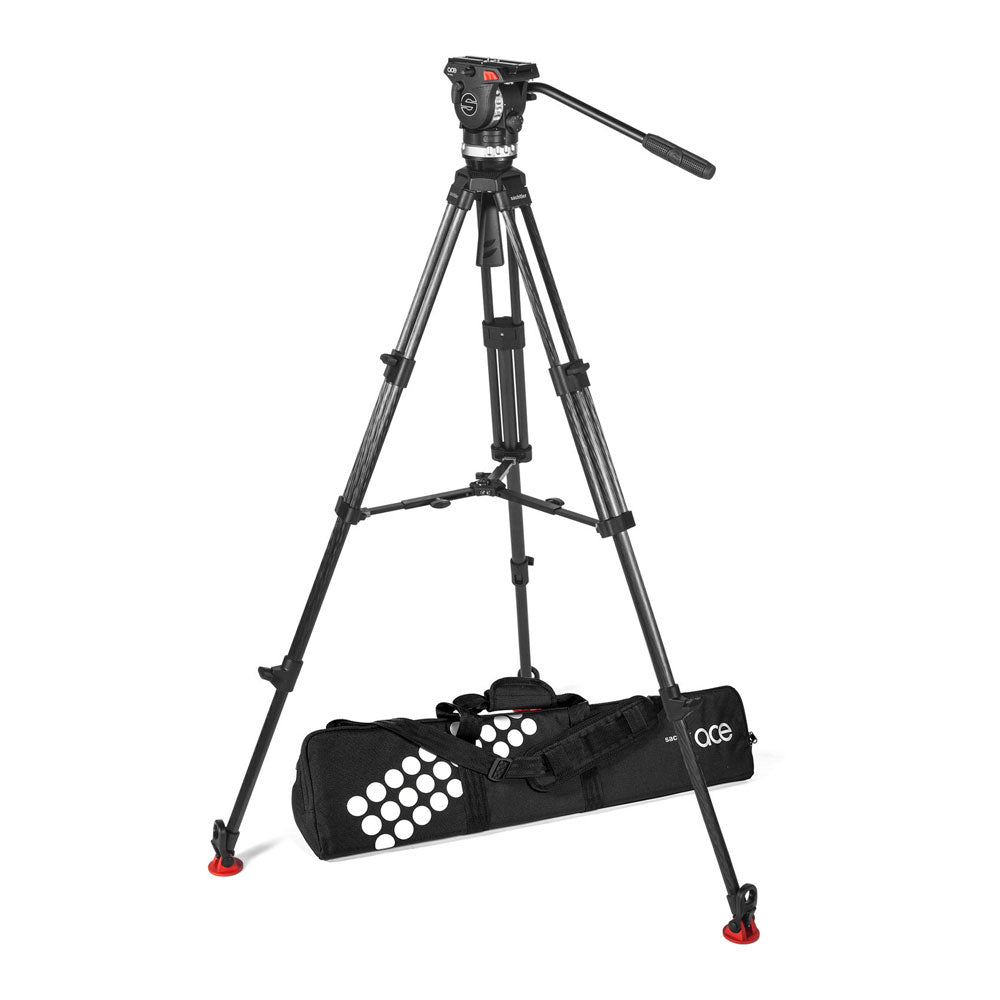 The Sachtler Ace XL MS Carbon Fibre Tripod System with 75mm bowl combines the Ace XL fluid head with the Ace 75/2 CF carbon fibre tripod and a mid-level spreader. Designed for digital cine-style cameras, the Ace XL supports rigs weighing up to 17.6 pounds. This system is suitable for larger DSLR and mirrorless MFT cameras, as well as pro-style cameras such as the Blackmagic URSA Mini, Canon C200/C300 Mk II, Sony FS7, and the Panasonic EVA1.