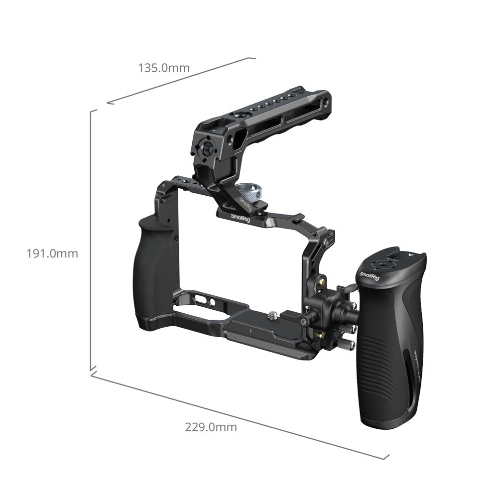 The SmallRig Advanced Cage Kit for the Nikon ZR is designed for smooth camera movements and effortless mobility, with a silicone-wrapped handle that offers a non-slip, cold-resistant grip and a contoured side handle that enables optimal handling with one-touch angle adjustments.