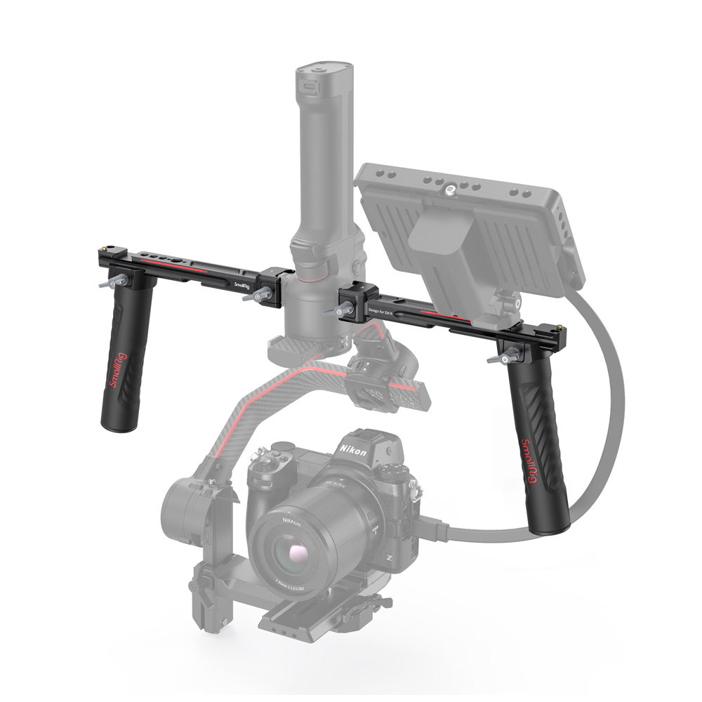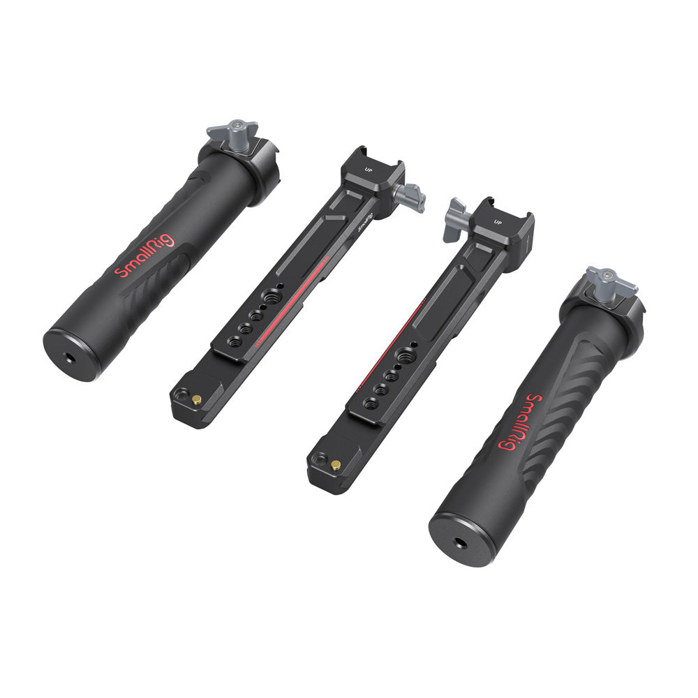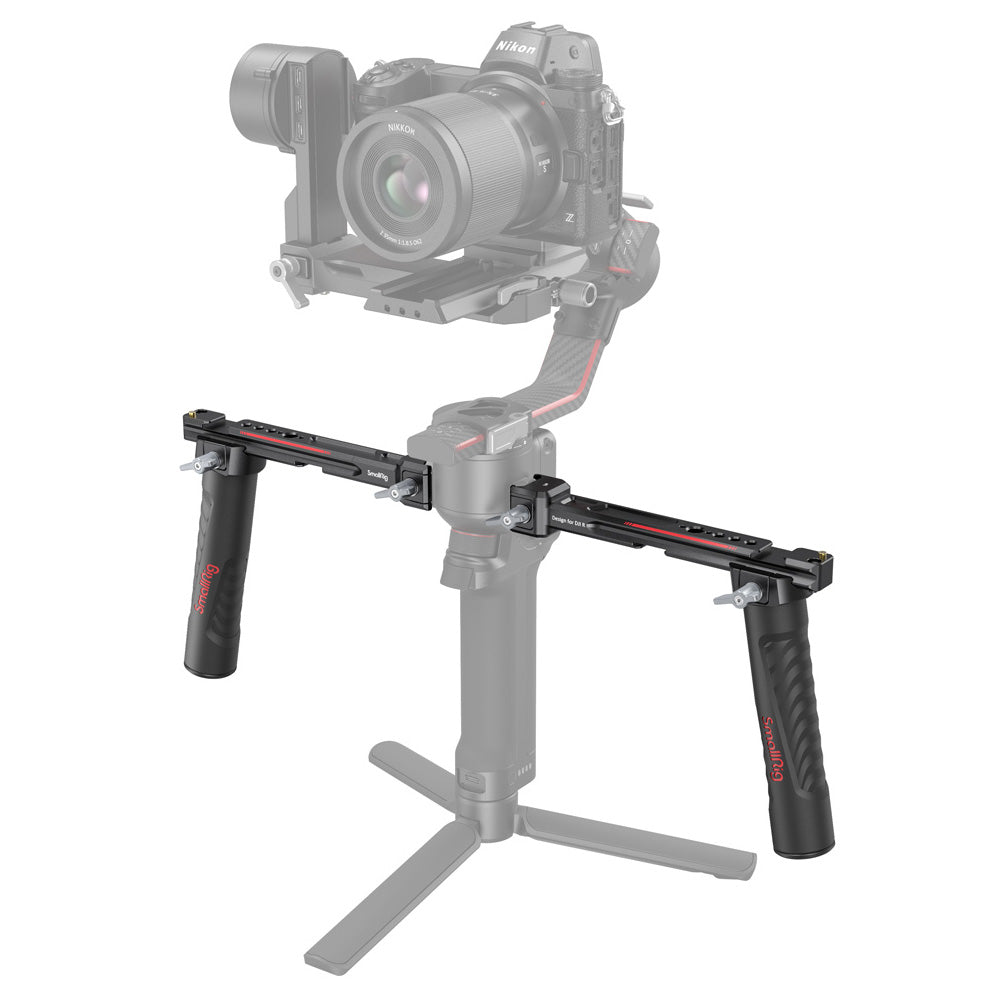 The SmallRig Dual Handgrip for DJI RS 2 / RSC 2 / RS 3 / RS 3 Pro / RS 4 / RS 4 Pro 3027 is designed to reduce arm fatigue during shooting and provide rich accessories mounts. It secures to the NATO rail on each side of the gimbal, easy for detachment and time-saving. The handgrip is designed with two-side NATO rails, which are not only horizontally adjustable, but also easy for detachment and support shooting in inverted mode. Multiple built-in 1/4"-20 and ARRI 3/8"-16 threaded holes can attach the SmallRig Magic Arm 2115 for monitor. Cold shoe ports can be used for Monitor Mount 2905B, wireless go, microphone, sound receiver, etc. It disassembles into four part for easy storage and transport.