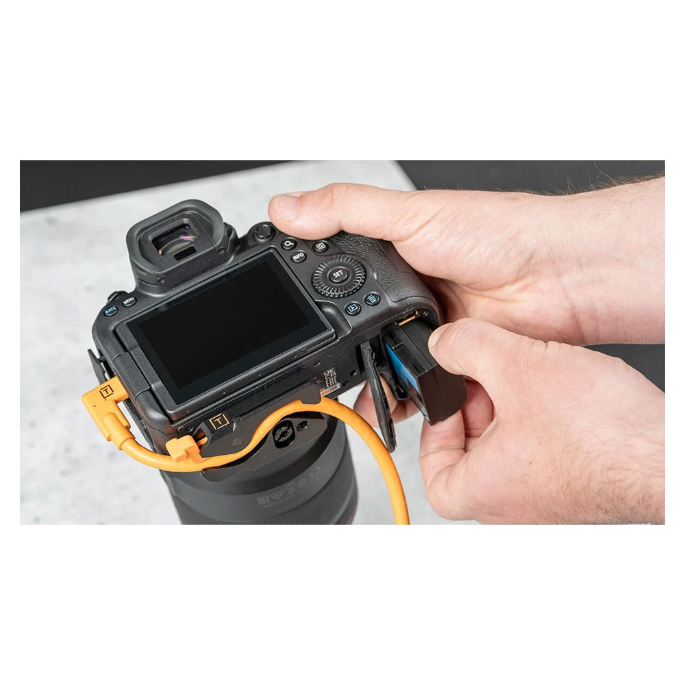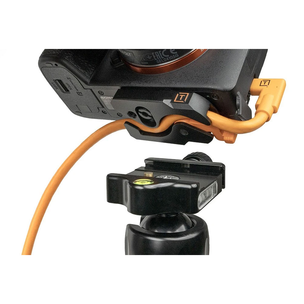 The TetherGuard® LeverLock® Plate from Tether Tools allows you to effortlessly connect or remove a cable from the camera without having to remove the plate from the camera, making setup and break-down a breeze. By locking the cable to the camera, you ensure a secure connection and protect the camera port and cable from damage.