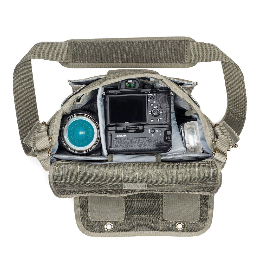 The Retrospective 20 V2.0 shoulder bag retains that classic look but includes many innovative new features. Keeping the soft, form-fitting design, they are lighter than the original. For greater security, ThinkTank added a zippered opening under the main flap that tucks away when not in use.