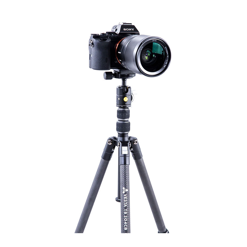 The Vanguard Vesta TB 204CB is a no-nonsense, lightweight, and compact carbon fibre travel tripod kit that is designed for maximum portability, but it still delivers a stable base for most mirrorless camera kits. This travel tripod kit features a carbon fibre tripod and an Arca-Swiss-compatible ball head. With a maximum load capacity of 6.6 pounds, this combination is perfect for most mirrorless camera kits.